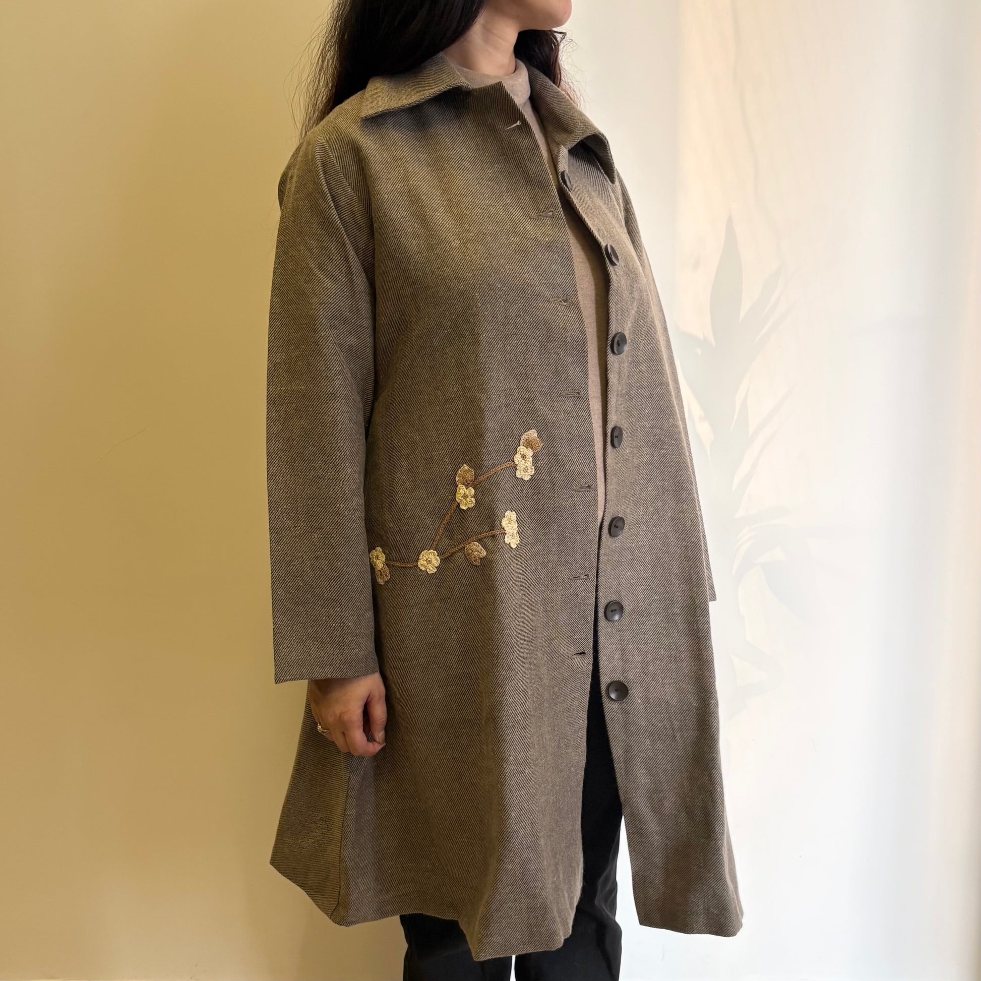 A winter classic, reimagined the Ikriit’m way. This beige woollen jacket is lined with soft cotton for warmth and comfort, finished with subtle crochet details that bring hand-touched charm to every stitch. Wooden buttons add an earthy warmth, while the A-line fit gives it a clean, flattering fall.