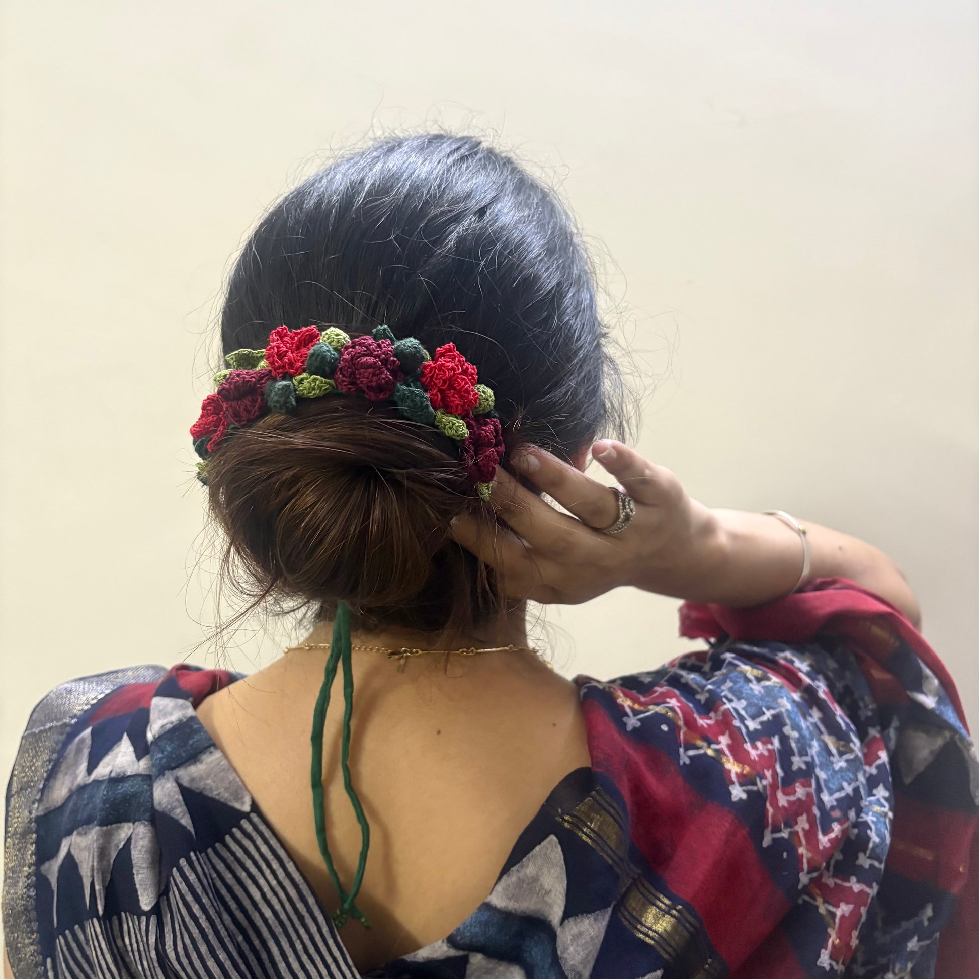 Blooming threads that move with you. Hand-crocheted with patience and love, this versatile floral string is more than an accessory — it’s a companion. Inspired by the timeless gajra, it carries the joy of flowers and the nostalgia of summer afternoons.