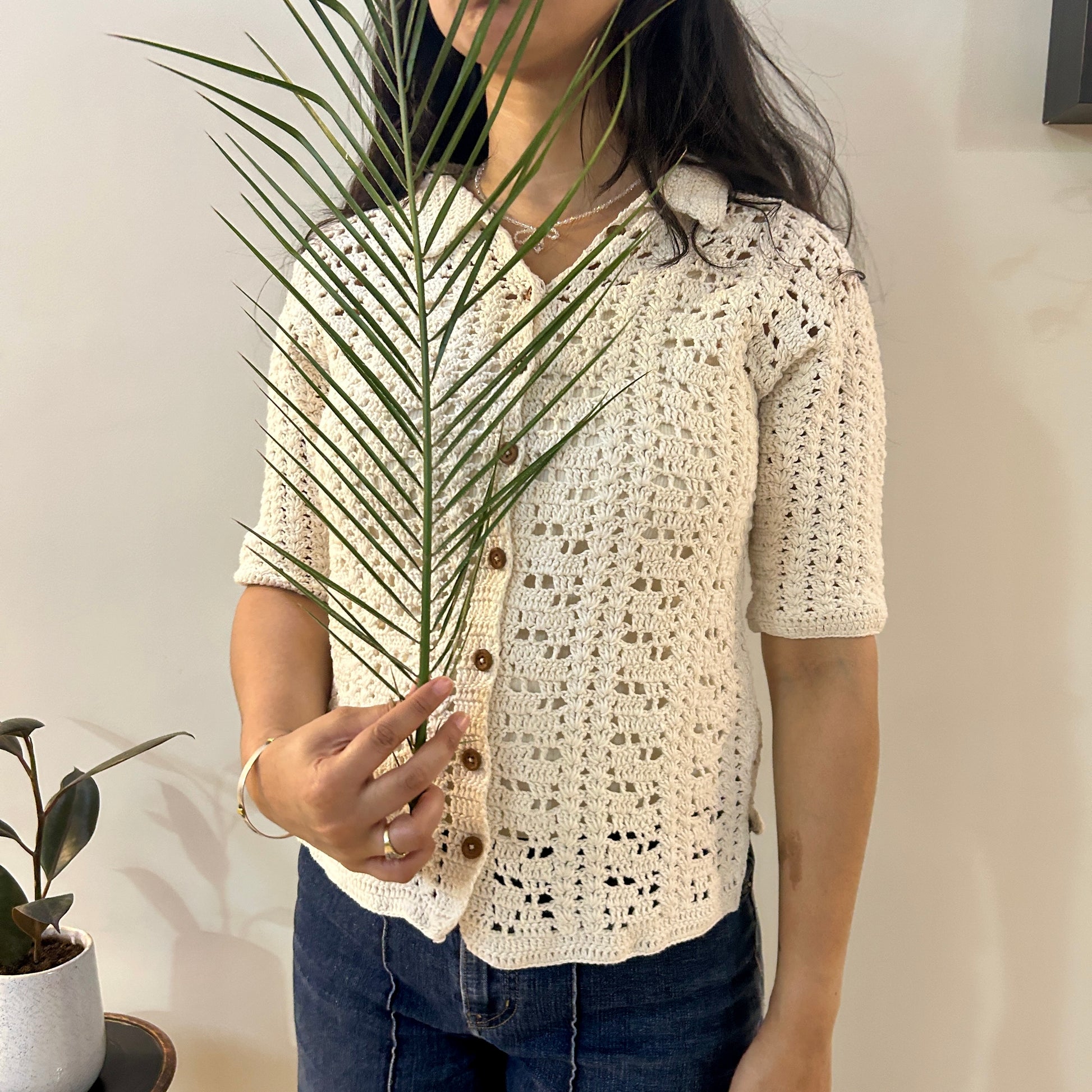 Introducing the unisex White Loom Lines Crochet Shirt, where classic design meets artisanal craftsmanship. This made-to-order piece features a clean white base with elegant loom lines and a sophisticated shirt collar.